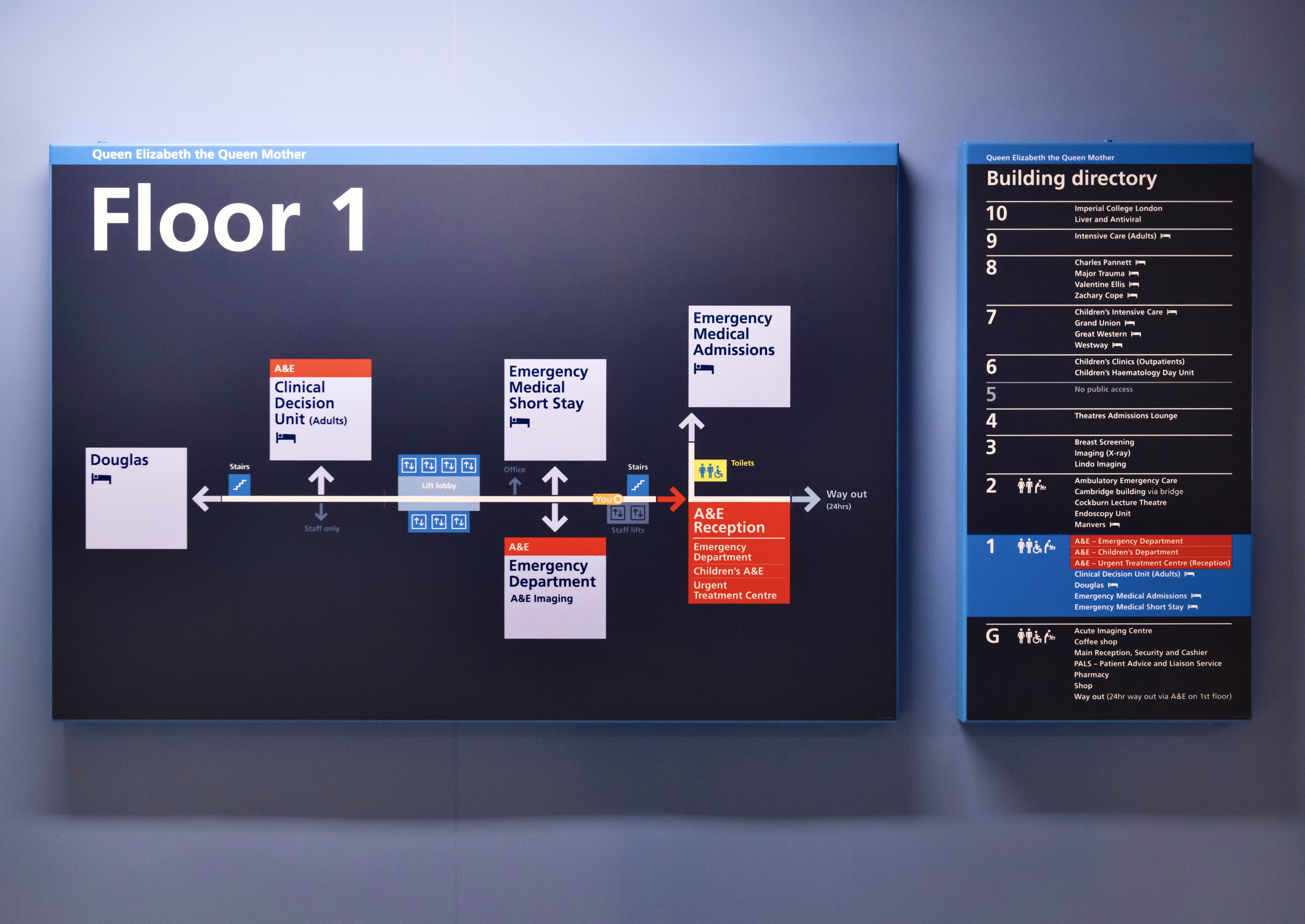 Working with multiple NHS Trusts, Applied developed a comprehensive hospital wayfinding system that unifies the communication of navigation information across diverse healthcare estates. It tackles the core issues of wayfinding in a hospital environment by ensuring consistency, clarity and accessible design.